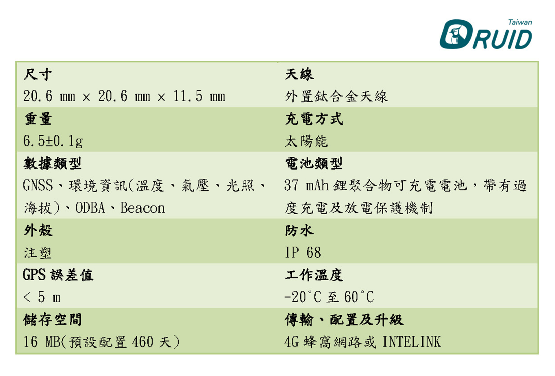 尺寸為20.6 × 20.6 × 11.5(mm),重量為6.5±0.1 g。